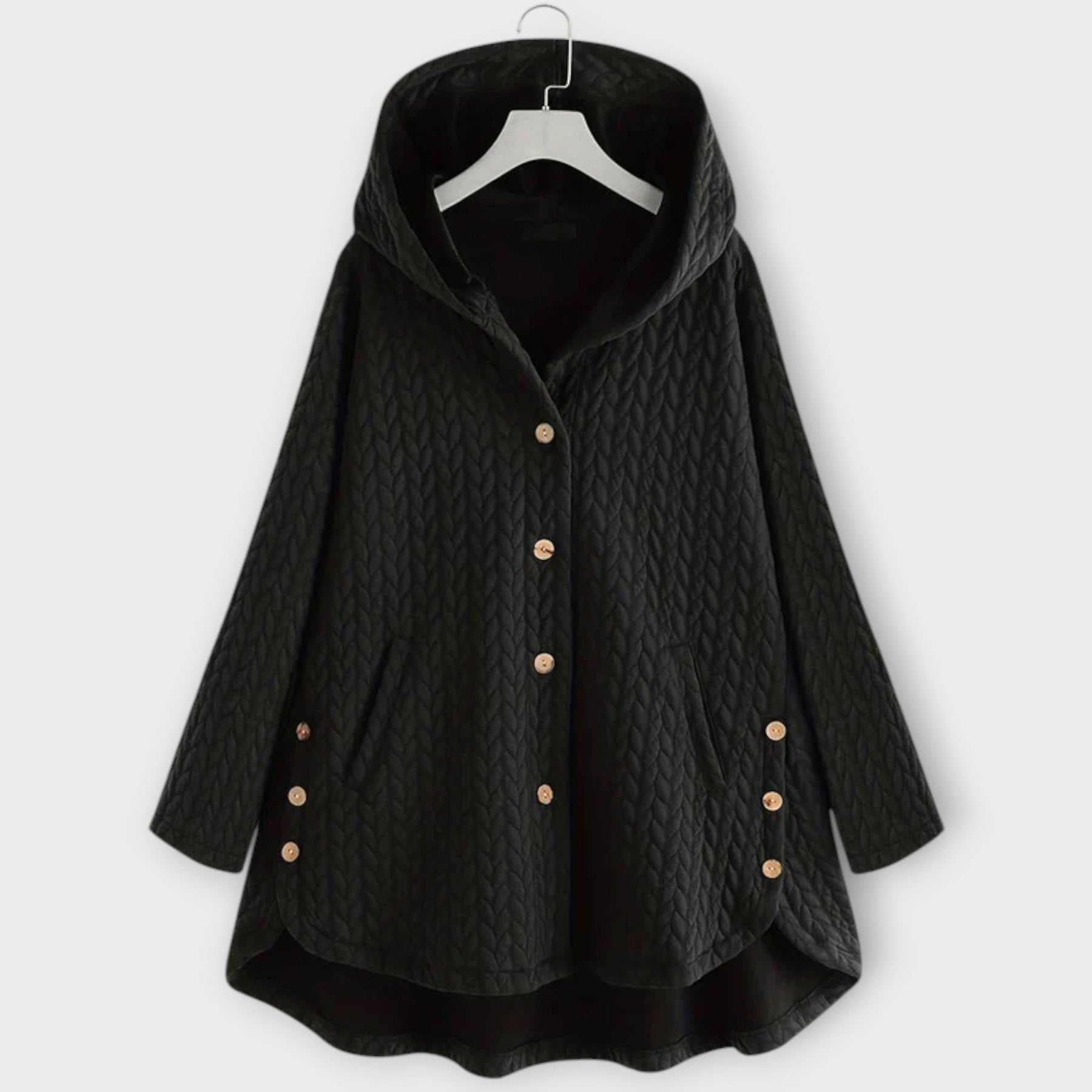 Jakna Leslie je izdelana iz visokokakovostnega izolacijskega materiala, ki nudi odlično toploto, ne da bi dodala volumen. Njen klasičen dizajn s gumbi in ohlapen kroj jo dela idealno za večplastne kombinacije – bodisi greš ven ali se sproščaš znotraj.