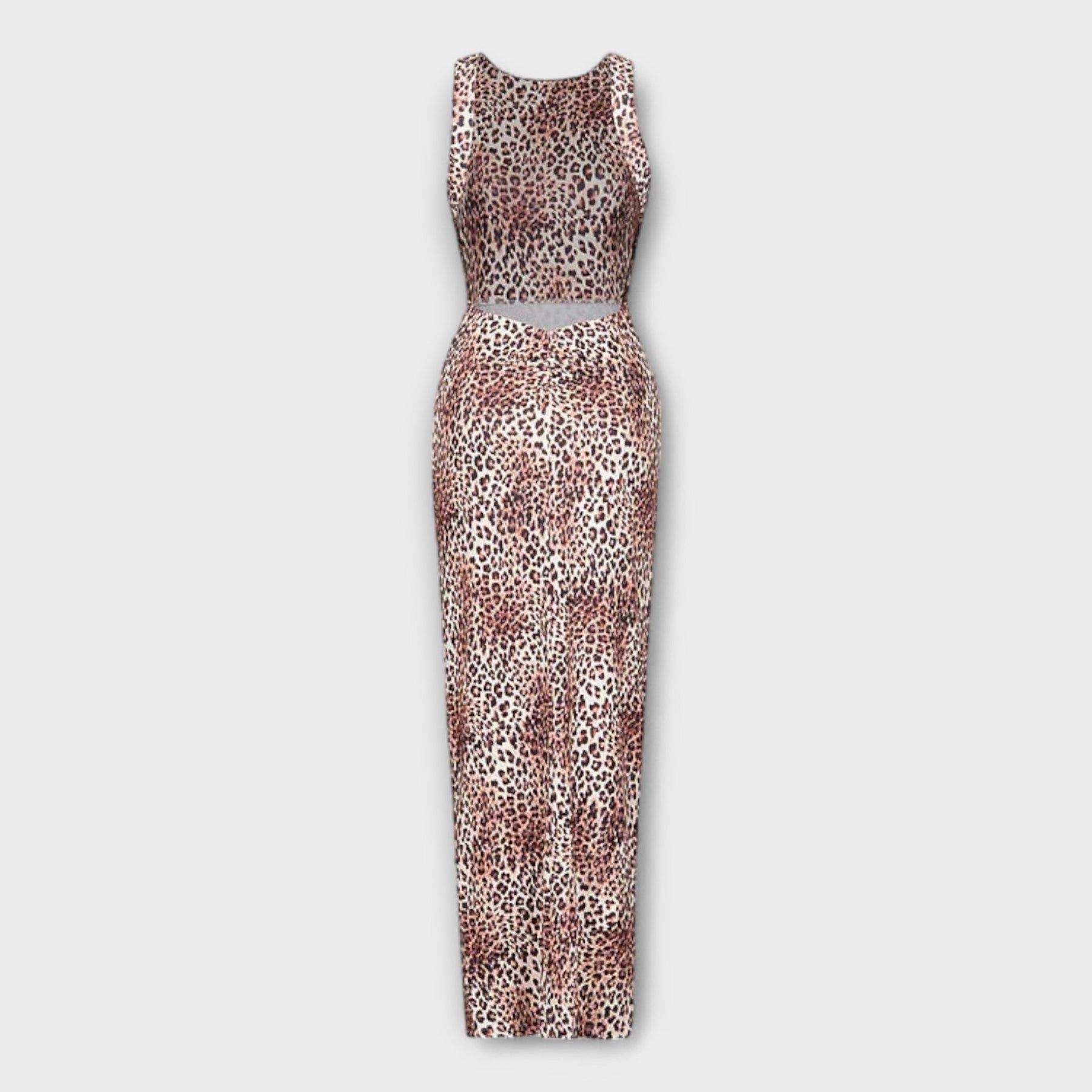 Della - Maxi obleka z leopardjim potiskom in razkritim hrbtom