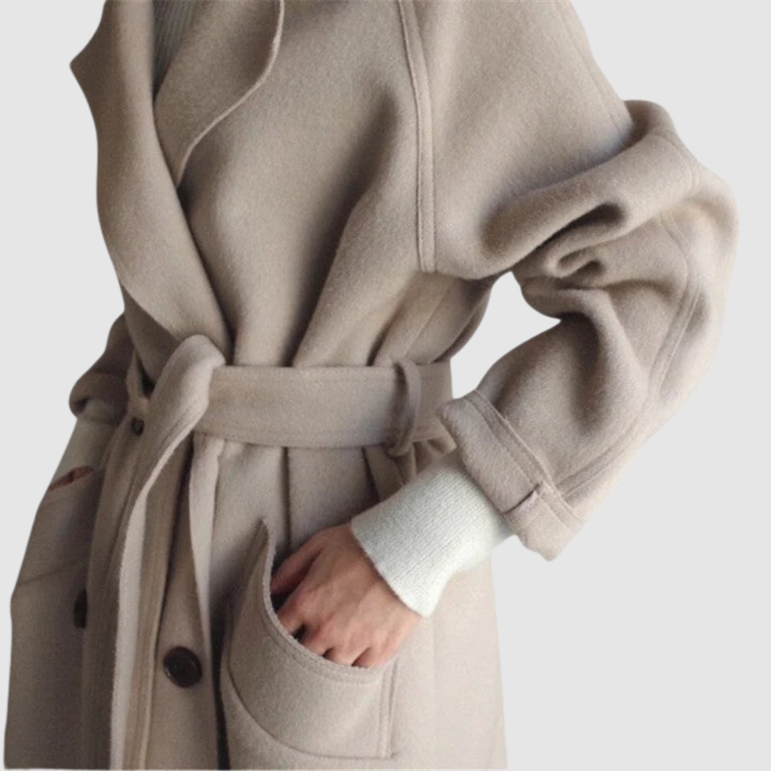 Ta plašč je idealen kos za ženske, ki želijo združiti brezčasno eleganco s praktičnostjo. Zaradi dolgega kroja nudi zaščito pred mrazom in hkrati daje outfitu sofisticiran videz. Minimalistična zasnova ga naredi univerzalno izbiro za vsakodnevne in formalne priložnosti.