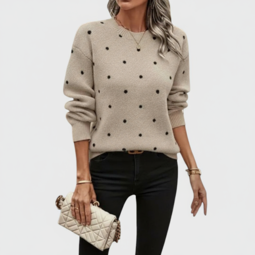 Brezčasen pulover s pikčastim vzorcem, mehak in udoben. S sproščenim krojem in univerzalnim dizajnom ga enostavno kombiniraš z jeansom, krili ali hlačami. Idealno za vsakdan in sproščene trenutke, vedno z eleganco in udobjem.