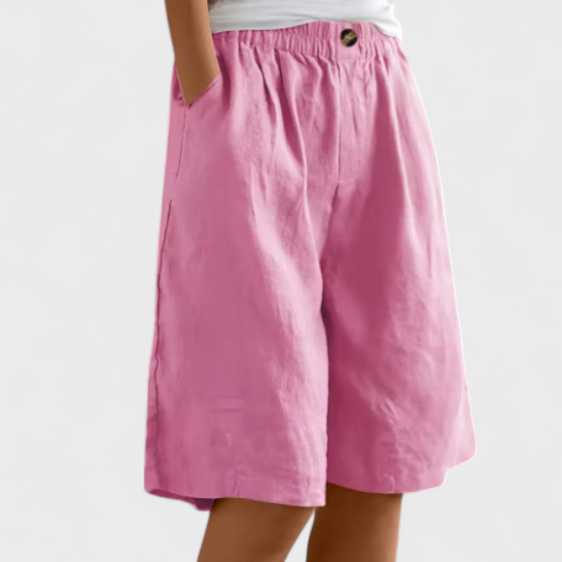 Kratke hlače Šárka združujejo ležerno eleganco z neverjetnim udobjem. Zaradi ohlapnega kroja, prijetnega materiala in elastičnega pasu jih lahko nosiš doma, na sprehodih in na poletnih počitnicah. Funkcionalne žepe in brezčasna zasnova jih naredijo nepogrešljiv kos za vsako moderno žensko.